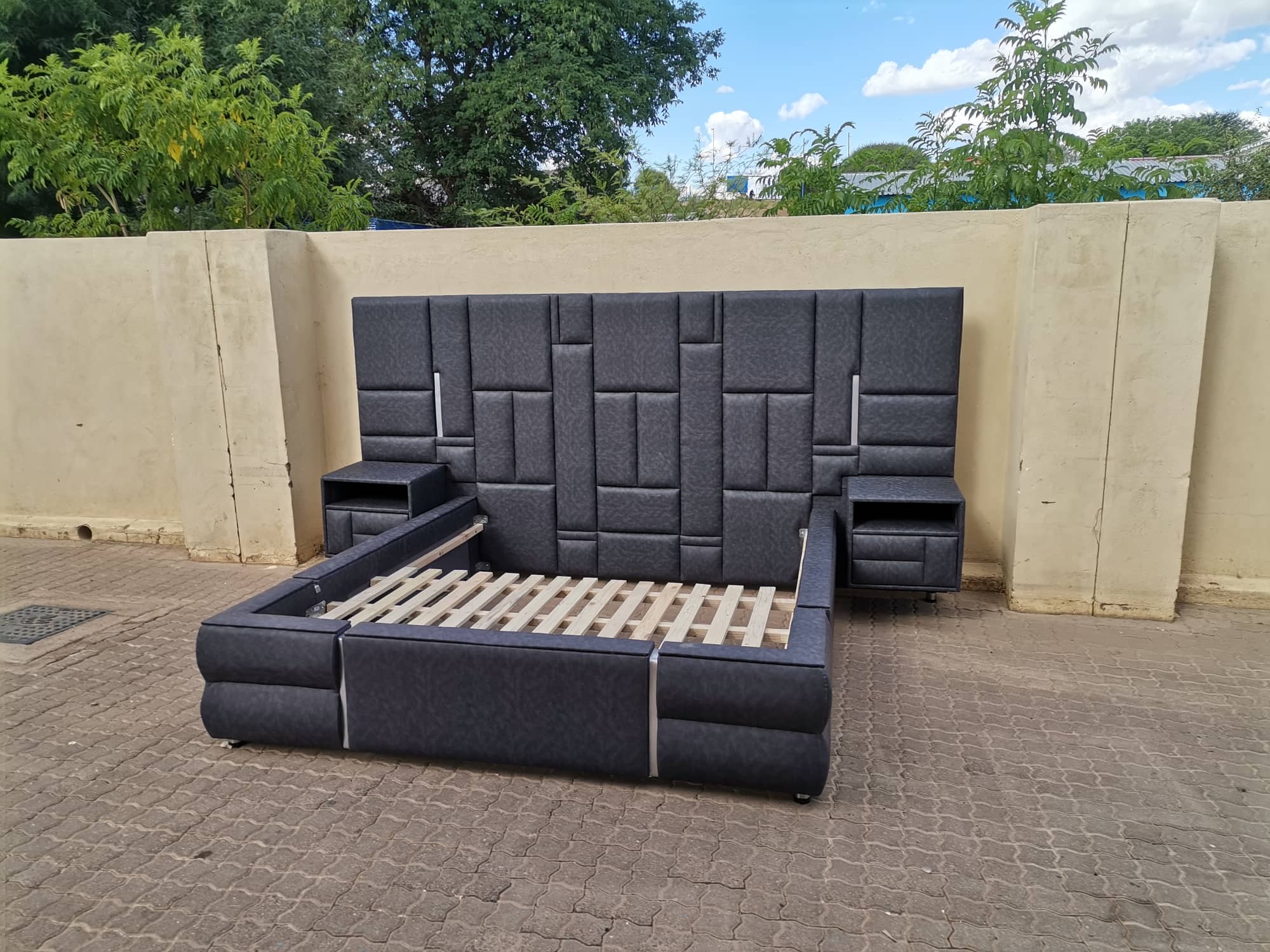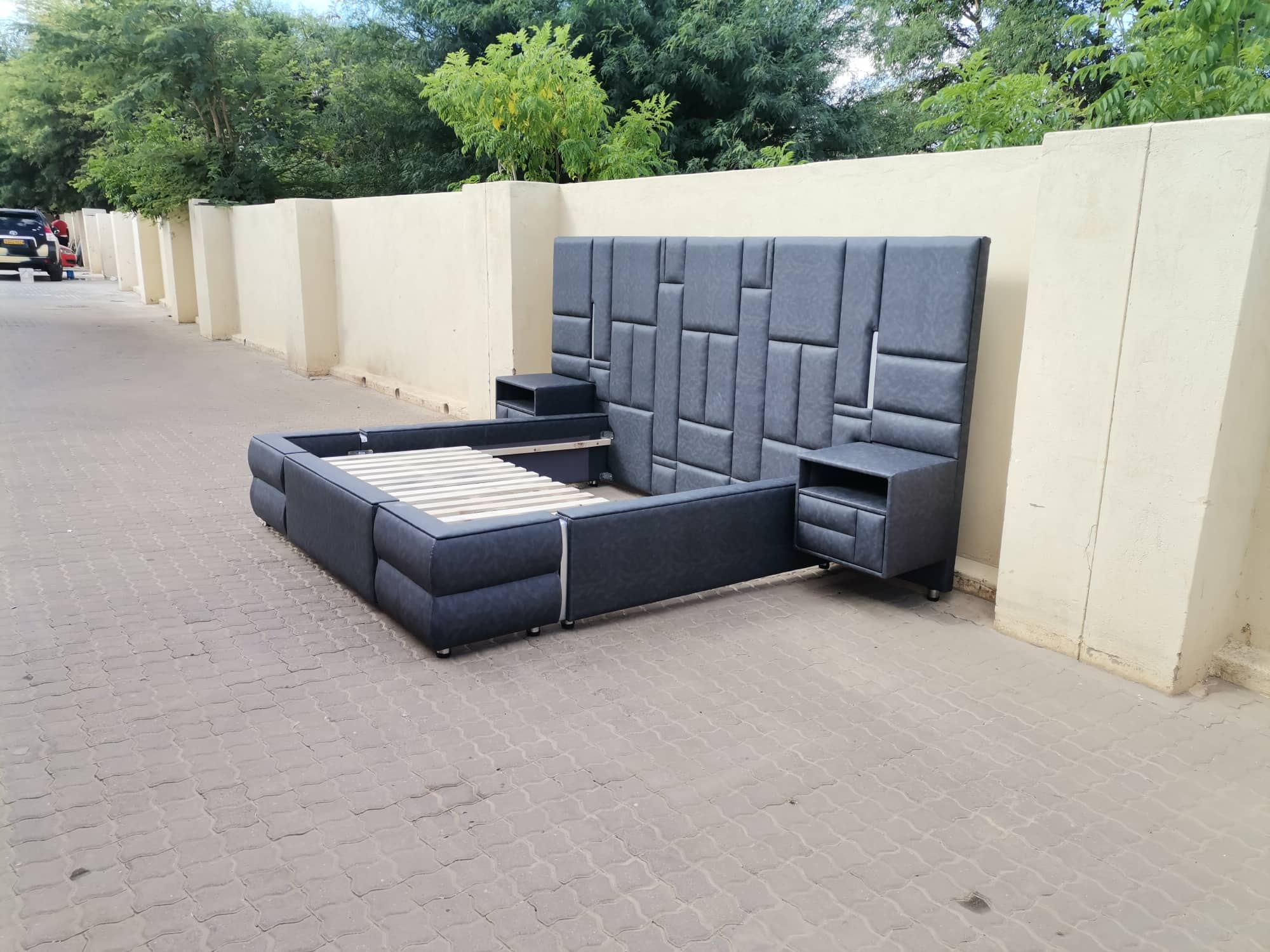Leather bed set Italian modern high-end